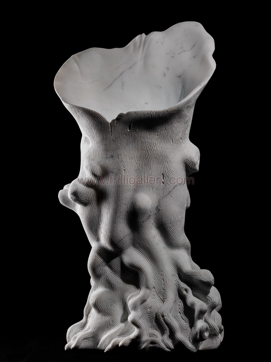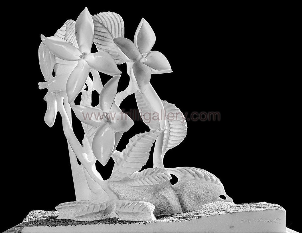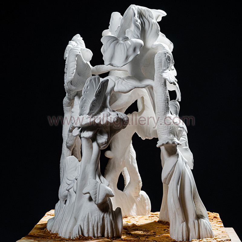 She loves marble and feels it is her element. She carefully follows all the phases of its development, from the rough draft or rough tessellation to the search for detail; because it is only with attention to detail that he feels he has completed his creation, not to imitate nature, but to nourish the sense of union and sharing he feels with it.