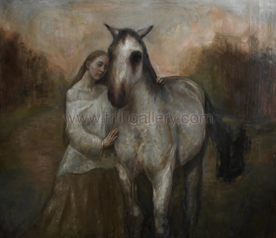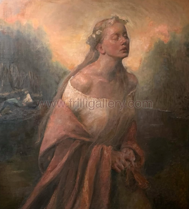Maya Valeria Barrett is a 22 year old Norwegian paintress who emphasises movement, poetry, and human relationships in her narrative style. She developed her indirect painting technique throughout several apprenticeships, the latest being Odd Nerdrum, with whom she has periodically studied since 2022. Barrett currently resides in Vienna, where she has continued her journey towards mastering her craft.