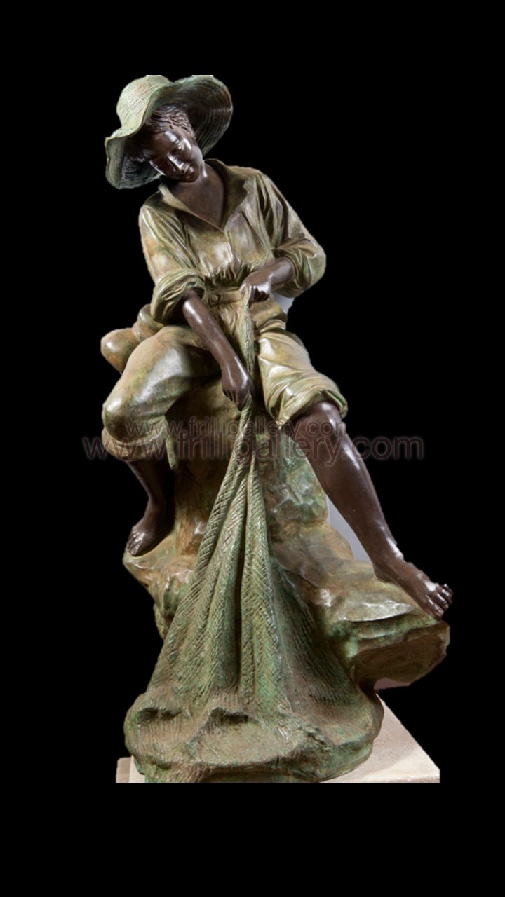 The bronze is extremely realistic and very well defined in the net of the fishes and also in the straw hat that the boy is wearing.