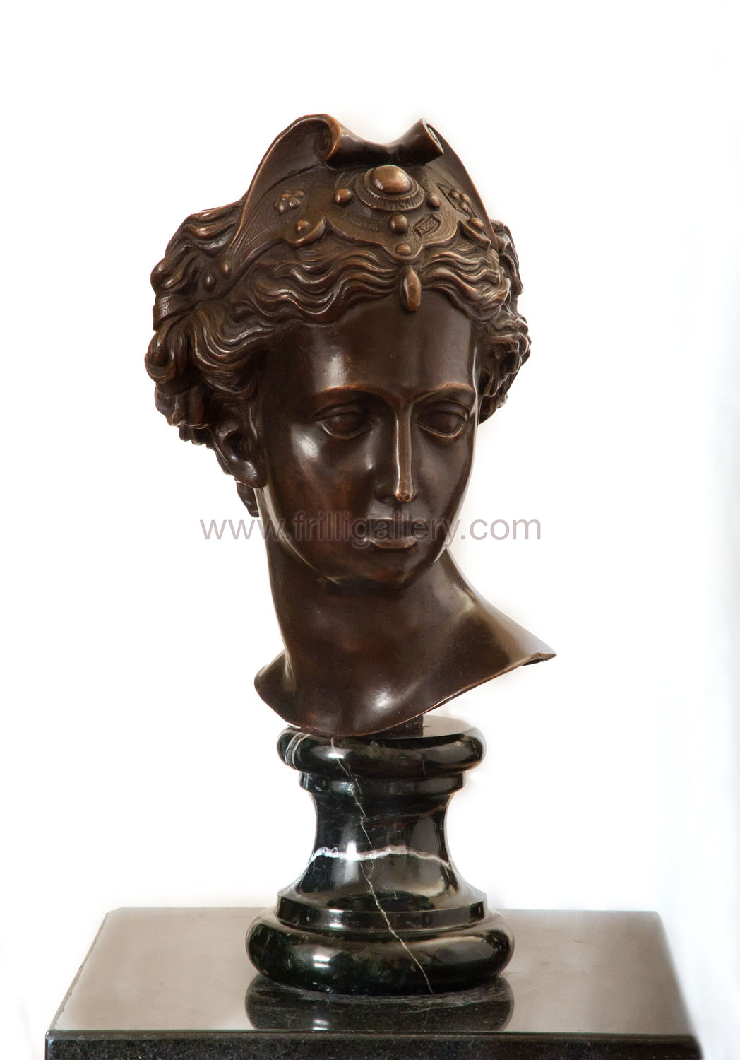 The small and delicate vision of the young woman framed by a sophisticated Renaissance hairstyle, makes her one of the most beautiful heads in the collection of the Frilli Gallery.