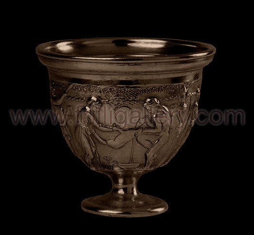 The vestals were the priestesses of the goddess Vesta, protector of the hearth and home life. Precisely for this reason the girls approached to this divinity are modest and devout figures. This cup celebrates the goddess and the idea of ​​home and family warmth.