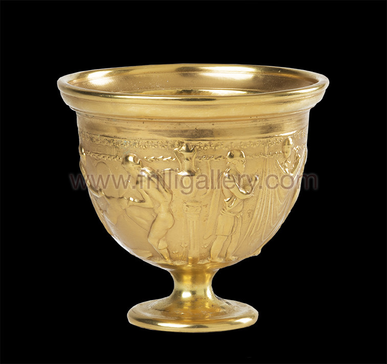 The vestals were the priestesses of the goddess Vesta, protector of the hearth and home life. Precisely for this reason the girls approached to this divinity are modest and devout figures. This cup celebrates the goddess and the idea of home and family warmth.
