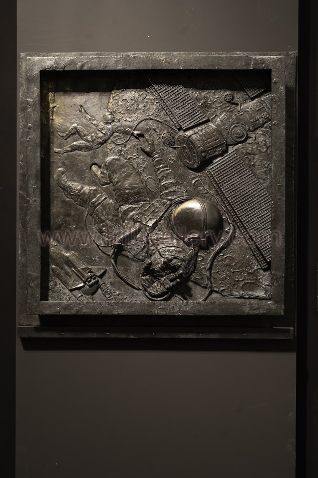 L’opera che interpreta il pannello “L’Arca di Noè” esplora l’idea di una nuova salvezza: un’arca moderna e tecnologica, pensata per traghettare l’umanità verso altri mondi.