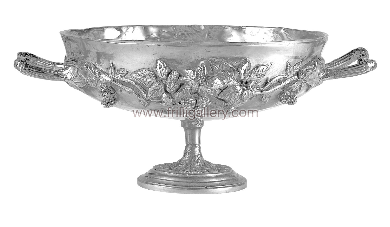 Il motivo naturale e vegetale raffigurante dei tralci di vite che corre lungo tutto il perimetro di questa coppa, ne costituisce il pregio. L'unicità di questa opera è data anche dalla maestria nella realizzazione di queste foglie di vite: un rilievo molto sottile, che le dona tridimensionalità, ma anche grande raffinatezza.